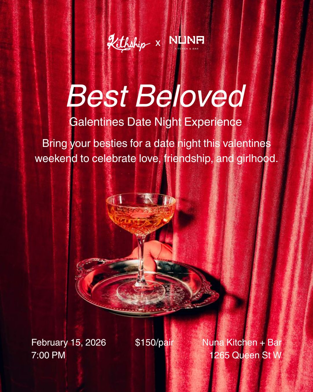 On February 15, Kithship is hosting Best Beloved Dinner - an intimate Galentine’s-style dining experience designed to celebrate friendship, chosen family, and platonic love. Think candlelit tables, good food, meaningful moments, and an excuse to gather your favourite people for a night that feels special without feeling performative.